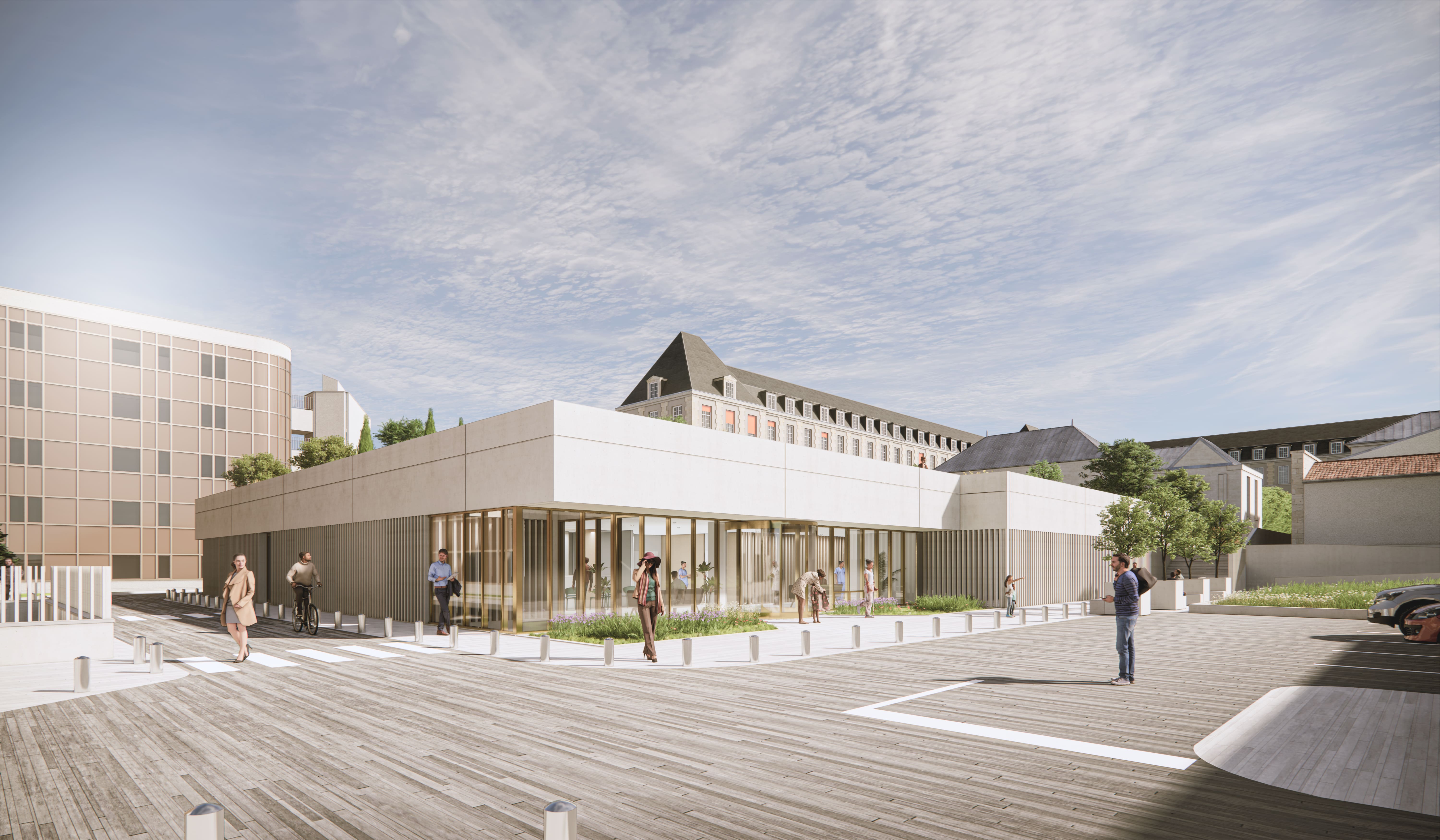 Le projet s’inscrit à la rencontre de deux puissants témoins architecturaux de leur temps : le bâtiment principal Lajaunias du XVIIème siècle et Broca fruit de la pensée moderne. Au pied de ces deux colosses, nous avons choisi de créer « un bâtiment jardin » faisant lien. Celui-ci prolonge le jardin classique qui vient à la rencontre de Broca.