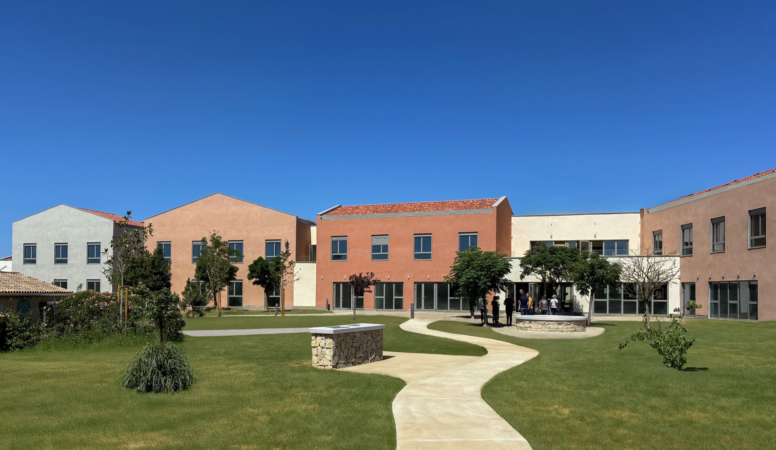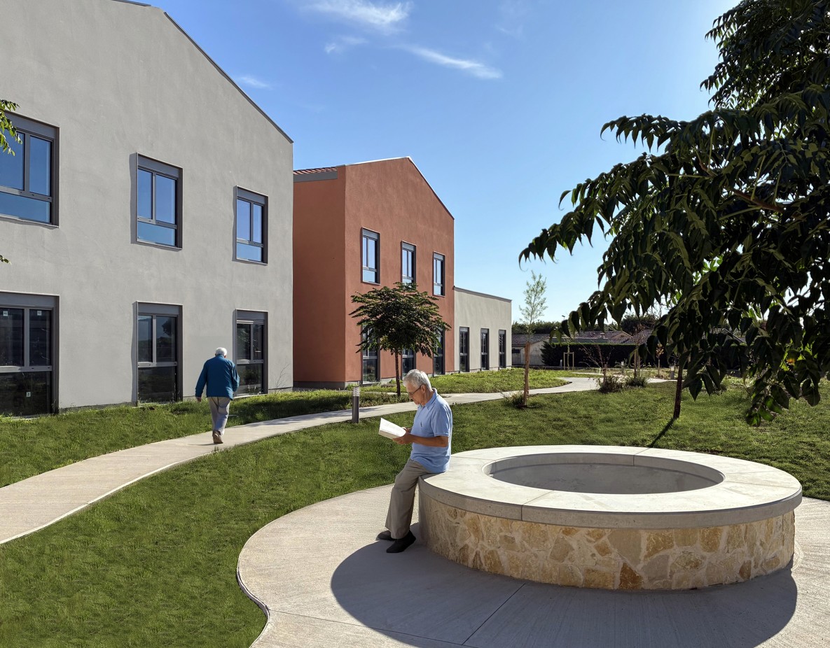 Implanté en lisière immédiate du centre de Trèbes et dans un parc, l’EHPAD du Hameau du Millénaire se veut simple. La reconstruction s’appuie sur une organisation lisible des espaces, pérenne et adaptée aux normes. La salle de restauration, véritable cœur de l’EHPAD, est entourée par la bibliothèque, l’accueil, la salle de soins, l’administration et le hall.