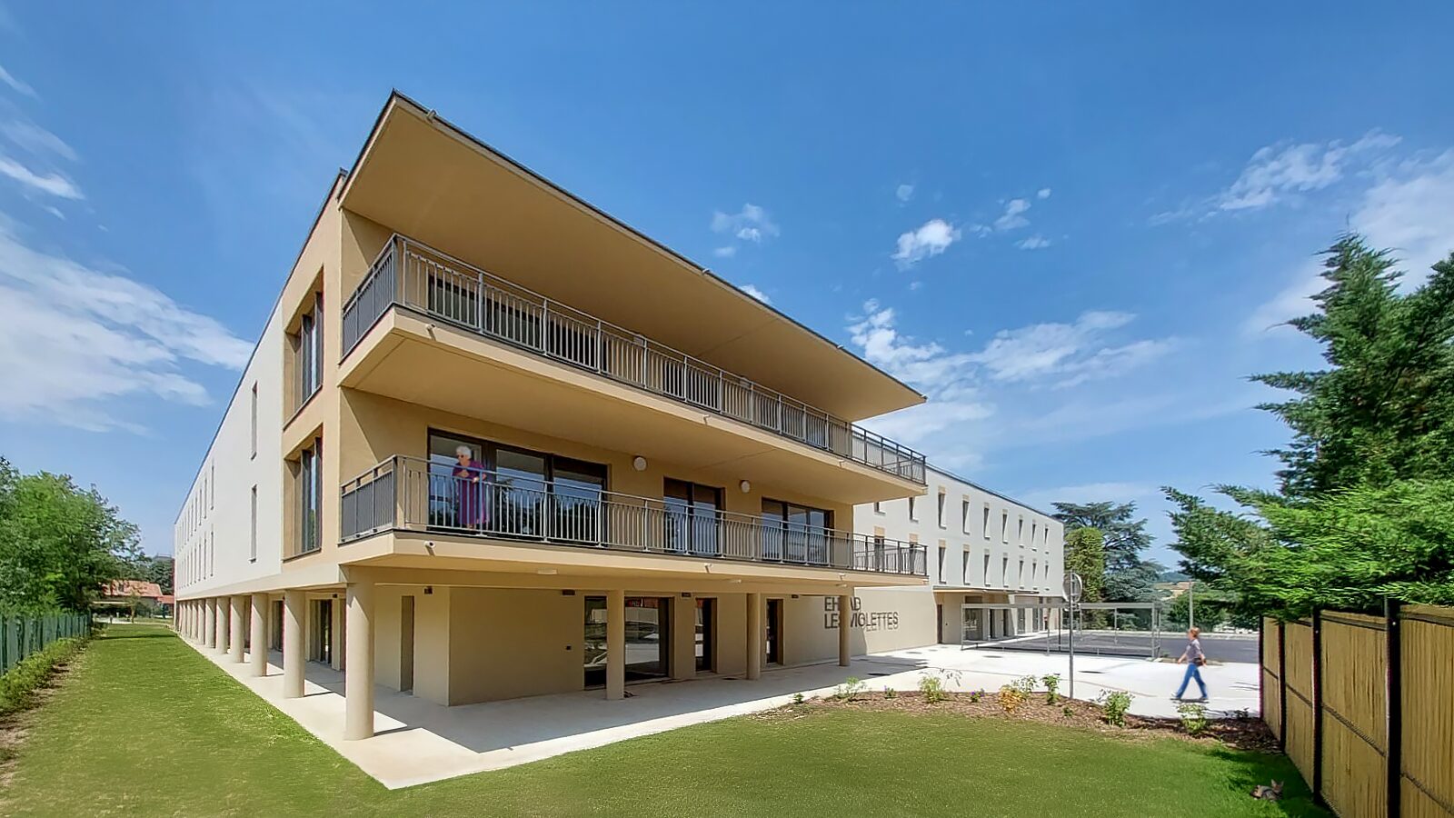 L’architecture générale de l’EHPAD est structurée sur une forme simple et orthonormée, un «L» qui permet d’épouser au mieux les limites de propriété.